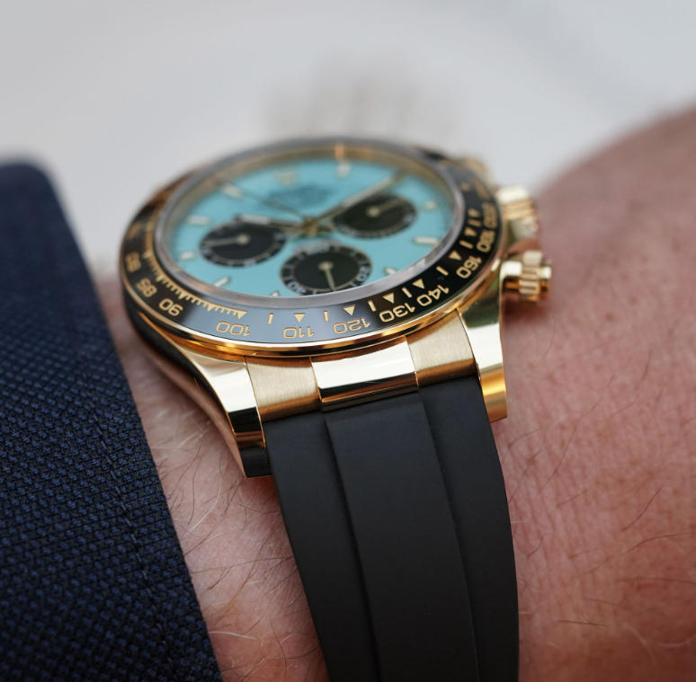 So, after seeing the best-selling Replica Rolex Daytona Alcaraz Turquoise Lacquer Dial 126518LN watches in the metal, I have changed my mind about it. Yes, I somehow like it. Yes, I somehow feel a bit guilty about it. No, it is absolutely not in line with the name of this magazine, and I must admit that I feel a bit alone in the MONOCHROME team. But I like the audacity and the unexpected style of the watch. And it could be that “guilty pleasure watch” that you don’t wear often but, in a certain way, makes you smile when wearing it. Would it be my first choice if I had to pick a Daytona? Absolutely not. I’m still very much after a classic steel model with a white dial. But I could see this turquoise edition coming as a solid third choice, after a blue dial/white gold version (not that I’m in the position of being able to acquire any of these anyway…)